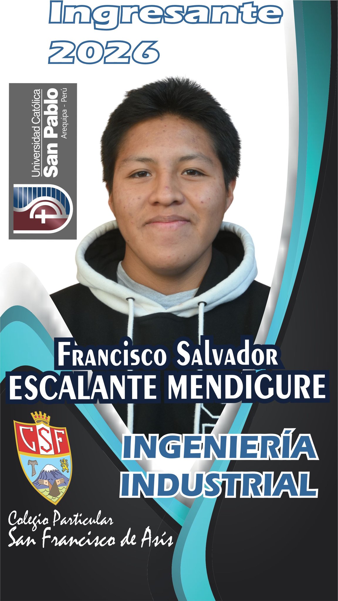 Nuevos ingresantes 2026 a la Universidad Católica de Santa María, felicitaciones muchachos franciscanos de noble corazón.