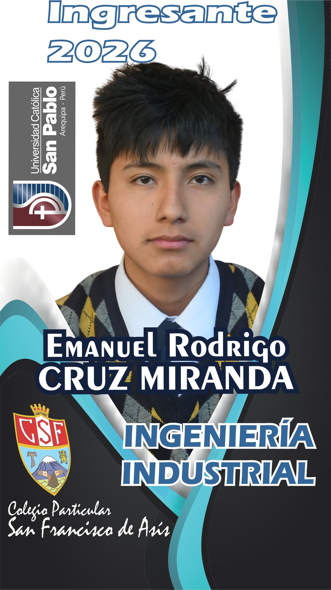 Nos complace presentarles a nuestros nuevos Ingresantes 2026 a la Universidad San Pablo. Son 45 estudiantes de Quinto de Secundaria que demostraron toda su capacidad. ¡Felicitaciones muchachos franciscanos!